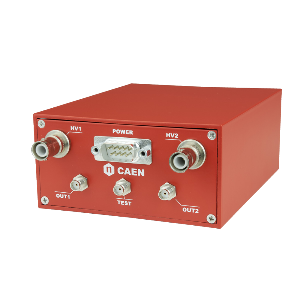 It is suited for silicon detectors with wide surface and high capacitance, used for nuclear and subnuclear physics experiments, where very low noise, fast response and high counting rates are required. The modules accept both positive and negative input charge pulses and provide an energy output of ±4.5 V range on 50 Ω termination (±10 V on 1 kΩ). Moreover, a test input accepts positive and negative signals for calibration purposes.