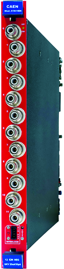 The CAEN Mod A1561H is a single width board (5 TE wide) that houses 12 independent high voltage channels.
