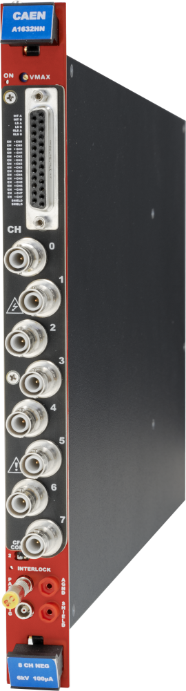 The CAEN Mod A1632H is a single width board (5 TE wide) that houses 8 independent high voltage channels.