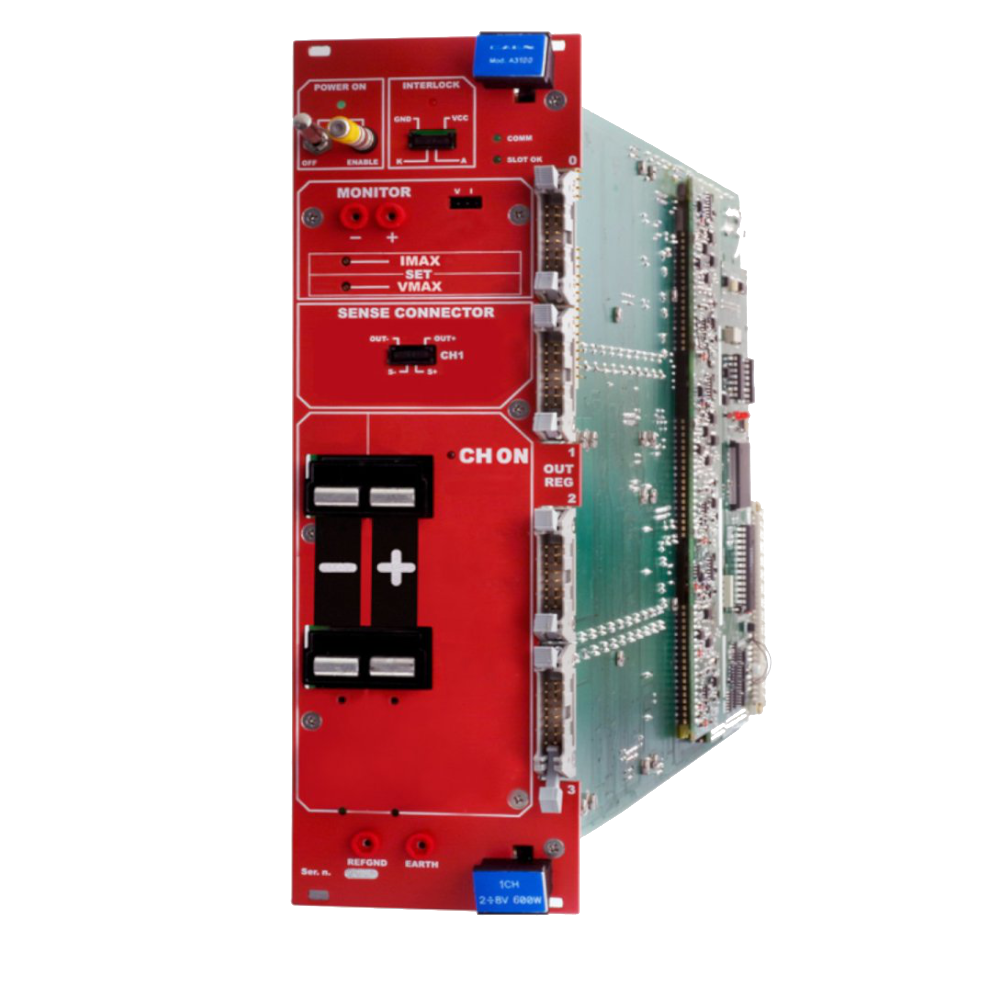 The CAEN Mod.A3100 is a 8 V / 100 a Power Supply Board, developed for operation in magnetic field and moderate radioactive environment. One A3100 houses one floating (reversible polarity) 8 V / 100 A (600 W maximum output power) channel.