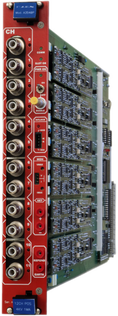 The CAEN Mod. A3540 4 kV / 1 mA Power Supply Board is developed for operation in magnetic field and radioactive environment. One A3540 houses 12 floating (up to 5 V between each other) 4 kV / 1 mA channels. The output voltage can be set with 500 mV monitor resolution.