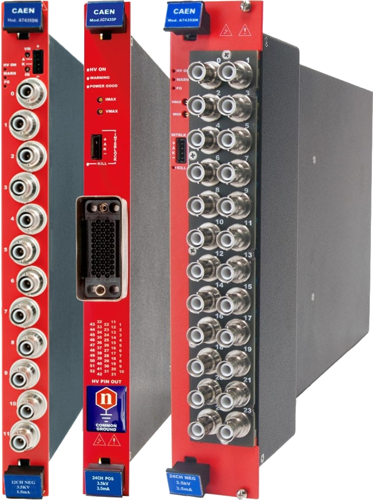 The power supplies of the AG7435 Family house 12 / 24 independent high voltage channels.