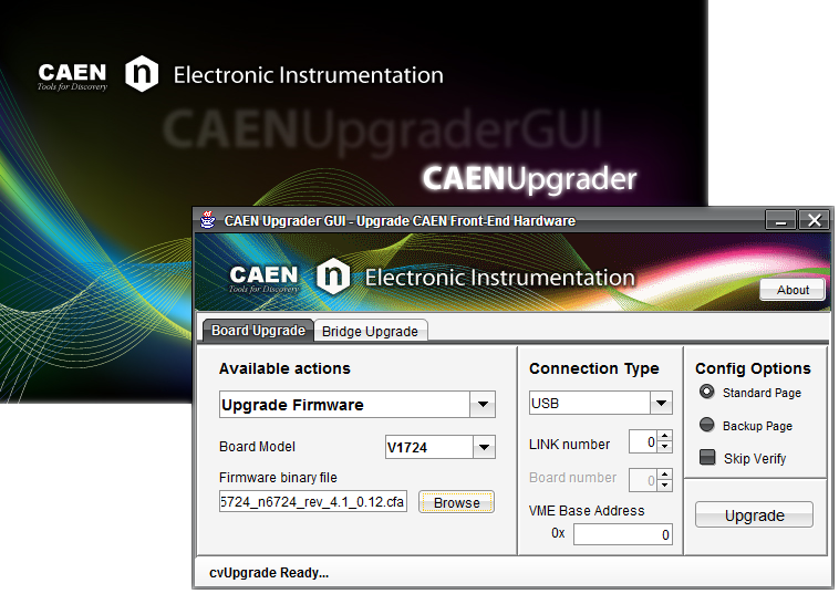Graphical Application for firmware upgrade on CAEN Front-end boards, bridges, and VME power supply units.