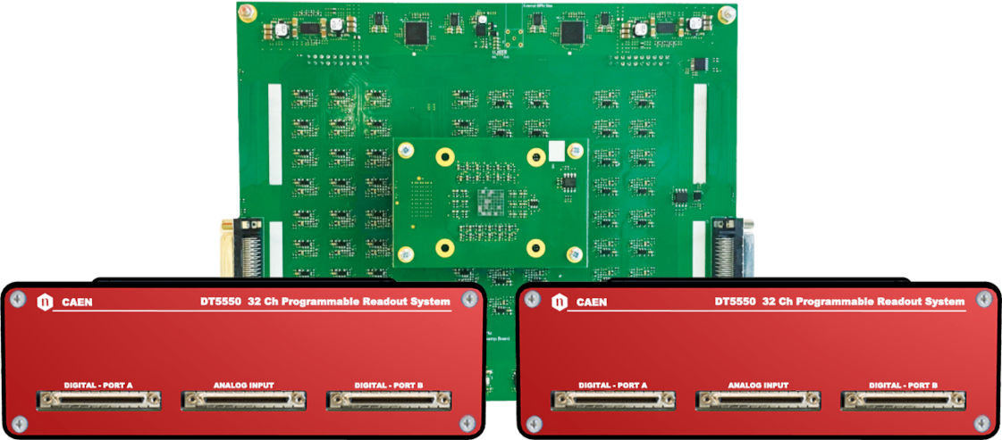 The DT5550AFE does not use programmable components: it can be placed near the detectors even in high radiation regions, in order to easily connect the single-ended signals to the DT5550 board for digitization and pulse processing purposes.