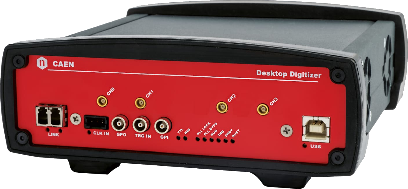 The CAEN Mod. DT5724 is a digitizer able to record waveforms along with performing advanced algorithms for online digital pulse processing (DPP) of pulse height analysis and dynamic acquisition window.