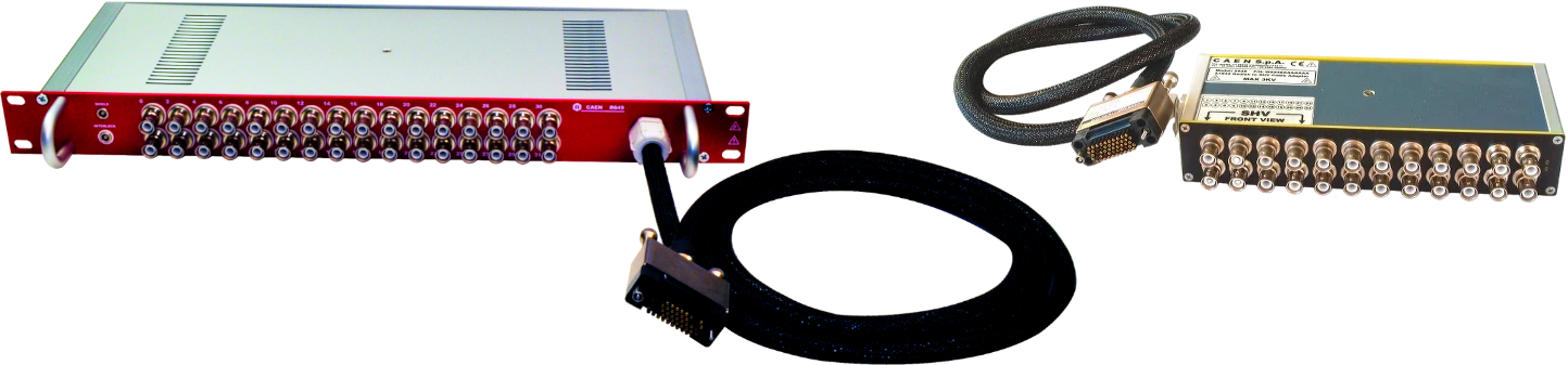 A1015x – A64x – R64x is a family of cable adapter that allows to adapt the high density SY boards connectors (DB37 and Radiall 52) to the SHV one. Available in Desktop and Rack form factor and can accommodate 12, 24, 32, 36 or 48 channels.