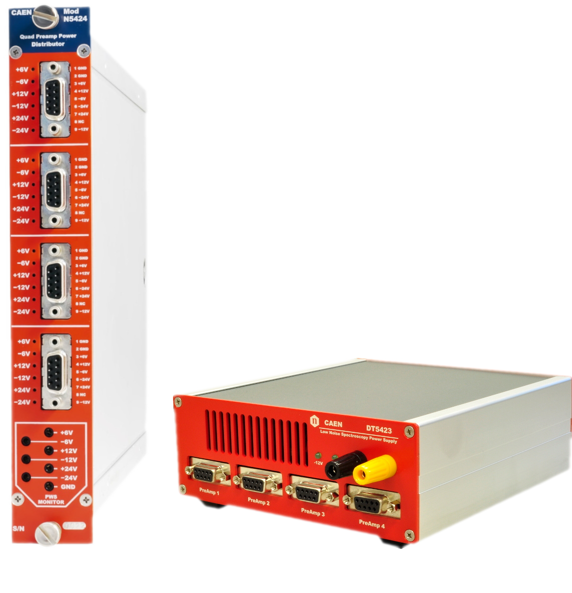 Four DB9 connectors (±12 V) to supply A1422 Preamplifiers