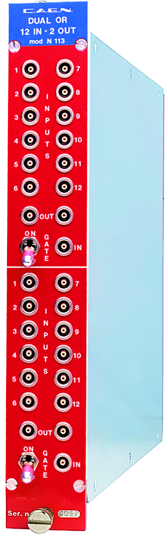 The Mod. N113 is a one unit wide NIM Module, with two 12 input – 2 output OR sections.