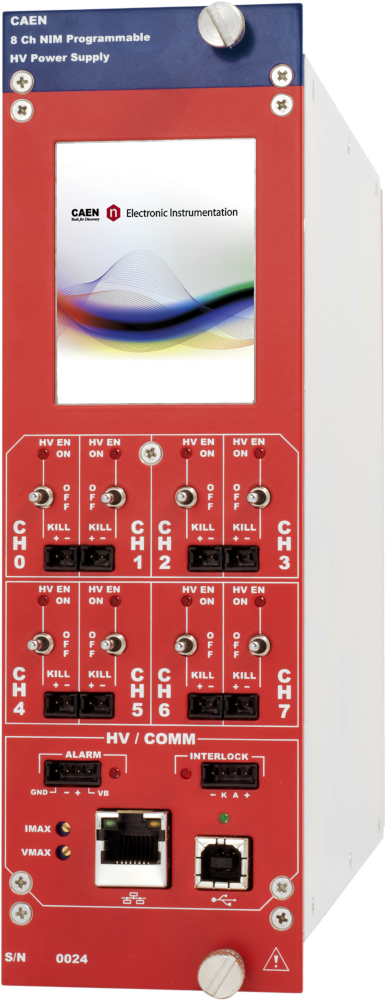 The HV output RAMP-UP and RAMP-DOWN rates may be selected independently for each channel in the range 1÷50 V/s in 1 V/s steps. The module features 50 nA Iset resolution. Module control can take place either locally thanks to a 2.8″ Touchscreen Graphic color LCD display with a completely redesigned user interface or remotely, via USB 2.0 or Ethernet. A complete set of Software Tools is available to control these units; the user can freely download low level libraries, LabVIEW driver and Graphical application software. The user can monitor the status of the module and configure the HV parameters for each channel in real time.