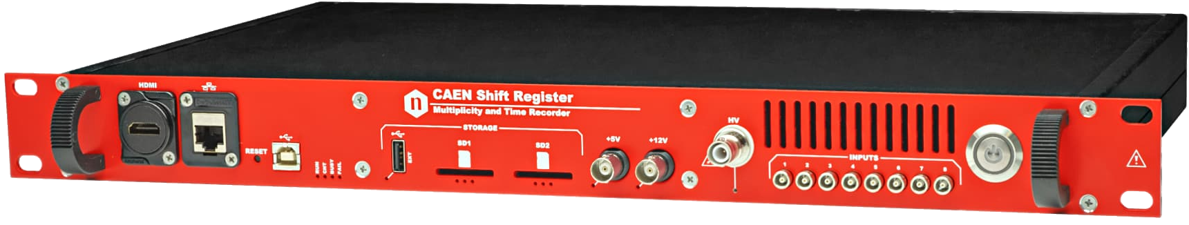 The CAEN Mod.R7780 manages the acquisition and analysis over up to 8 neutron detectors that can work in unattended mode. Mechanics are compliant to 19” racks, and it can be operated also as stand-alone.
