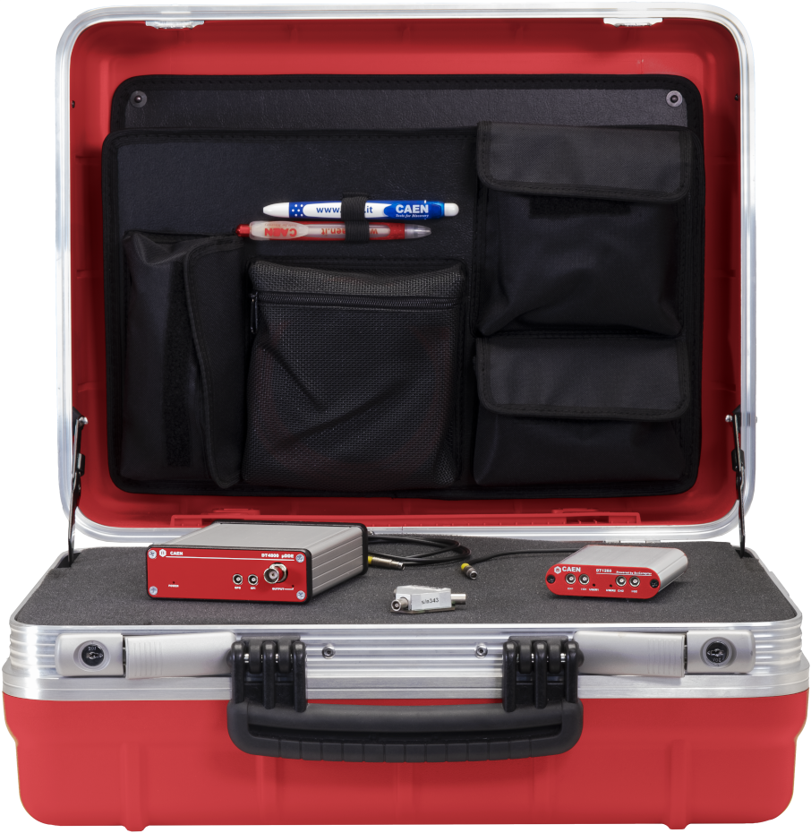 The DT5720A is a CAEN Desktop Waveform digitizer housing 2 channels 12 bit 250 MS/s ADC with a dedicated charge integrating firmware for real time pulse processing.