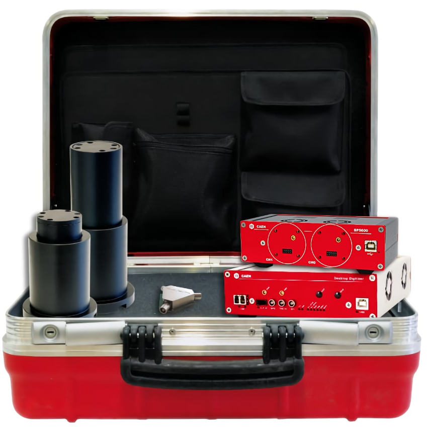 The DT5720A is a CAEN Desktop Waveform digitizer housing 2 channels 12 bit 250 MS/s ADC with a dedicated charge integrating firmware for real time pulse processing.