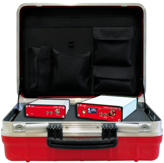 The DT5770 is a compact portable Digital MCA for Gamma spectroscopy. It is suited for high energy resolution semiconductor detectors, like HPGe and Silicon Drift Detector, connected to a Charge Sensitive Preamplifier. The unit can also properly operate directly connected to a PMT with inorganic scintillators (e.g. Nal or Csl scintillators), provided exponential pulse shape and decay time above 200 ns. It integrates analog front-end with programmable gain and possible AC coupling.