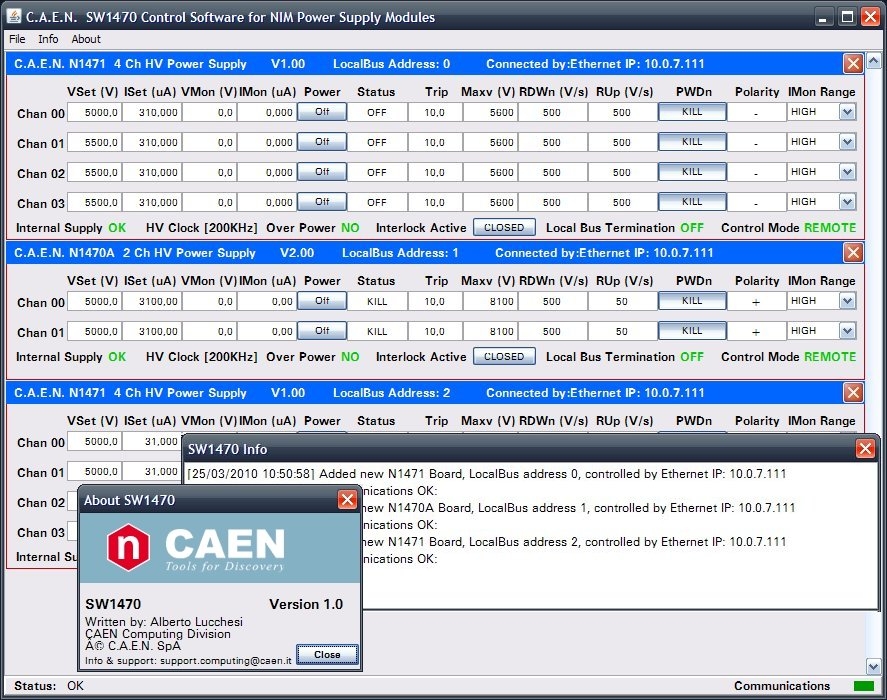 The CAEN NIM8301 Crate allows also to communicate with the first module in the chain also via Ethernet.