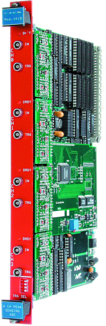 The Mod. V419 is a 1-unit wide VME 6U module which houses 4 channels of linear gate and stretcher with a multiplexed 12 bit ADC.